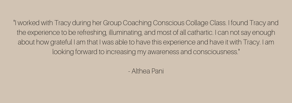 Before becoming a coach, Tracy built and, continues to cultivate, a career as an analog collage artist, She is known for hand-cut visual portals that explore identity, transformation, and presence. Her work, held in the permanent collection at the Leslie-Lohman Museum and exhibited throughout New York City, mirrors the very process she guides clients through: cutting away what no longer fits, reconstructing from truth, and becoming the next version of self—deliberate, embodied, and aligned.